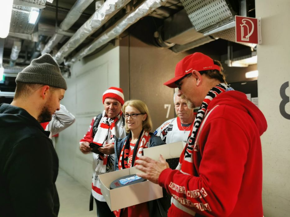 Nach dem Spiel erfolgte dann auch noch eine Tortenübergabe mit dem WM Logo 2023 an die Spieler, welche ihnen hoffentlich auch eine süsses Lächeln beim verzehren bereitet. Auch dafür unser großer Dank an die Mitglieder Julia und Finki!